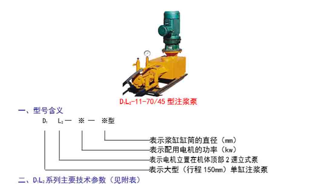 D1L2系列大型单缸立式2速注浆泵主要技术参数表