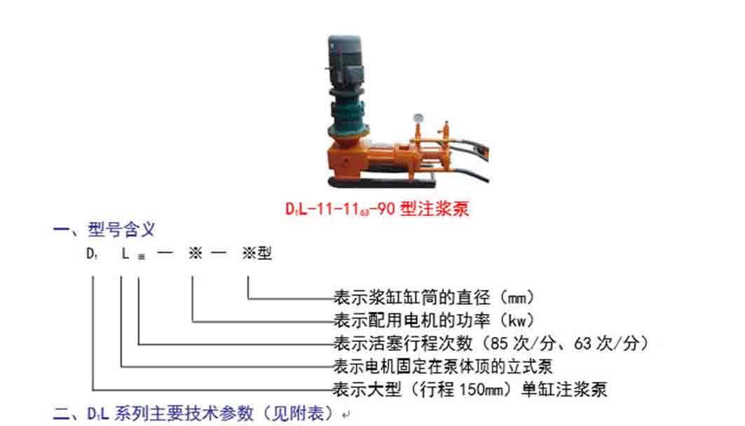D1L系列大型单缸立式注浆泵主要技术参数表